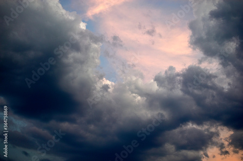 Fototapeta premium Blue evening sky with beautiful blue clouds in summer