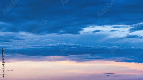 Obraz premium Blue evening sky with picturesque clouds. The last rays of the setting sun.