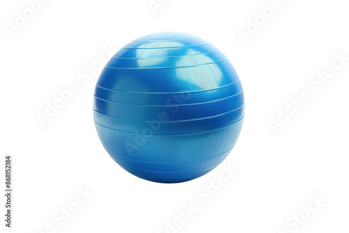 © Jeerawut, Obraz premium Blue exercise ball isolated on a white background, ideal for fitness, yoga, Pilates, and core workouts. High-quality gym accessory.