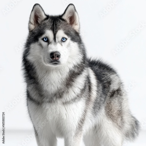 © niramol, Obraz premium Blue-Eyed Husky Dog Portrait on White