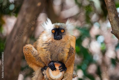 © Elena, Obraz premium Blue eyed lemur on tree in forest