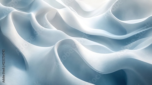 © Almahyra, Obraz premium Blue fabric waves, flowing gently, light background, abstract design