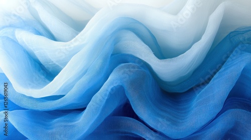 © Ika, Obraz premium Blue fabric waves, gradient texture, studio shot, background blur, textile design