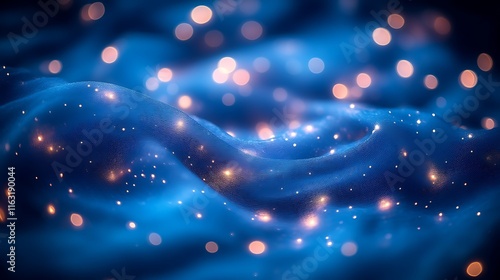 Fototapeta premium Blue Fabric Waves With Golden Lights
