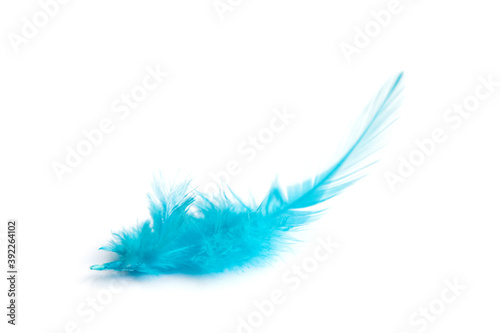 Obraz premium blue feather isolated on white background