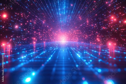 © Alexander LW, Obraz premium Blue fiber optic network lines perspective background.