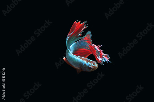 © Vichit, Naklejka premium Blue fighting fish on a black background.