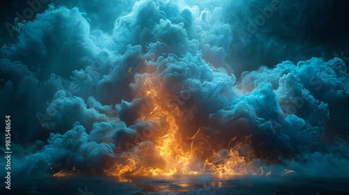 © Tharshan, Fototapeta premium Blue Fire with Transparent Background