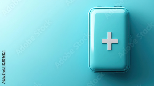 © javu, Fototapeta premium blue first aid kit with white cross on blue background