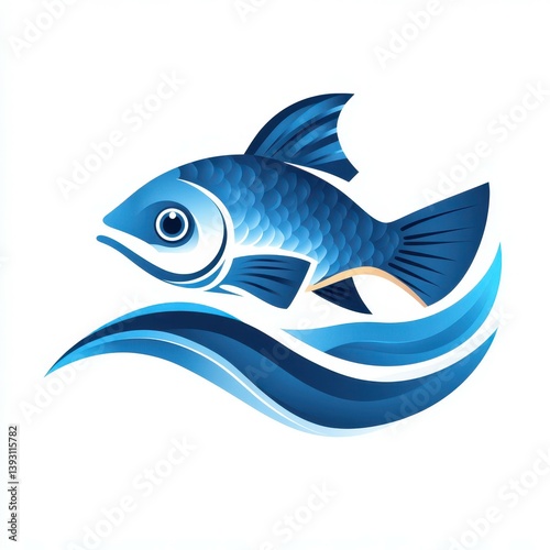 Fototapeta premium Blue fish swimming gracefully through stylized waves in an artistic...