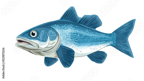© MuhammadSaad50, Fototapeta premium Blue Fish Vector Illustration Isolated on White Background