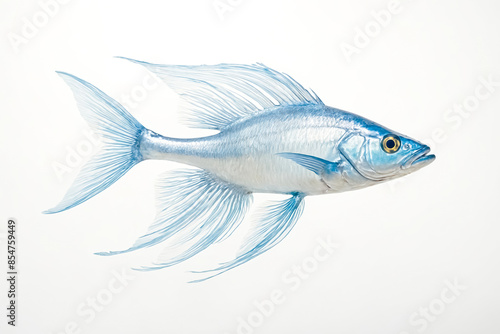 © Rysak, Fototapeta premium Blue Fish with Flowing Fins Isolated on White Background