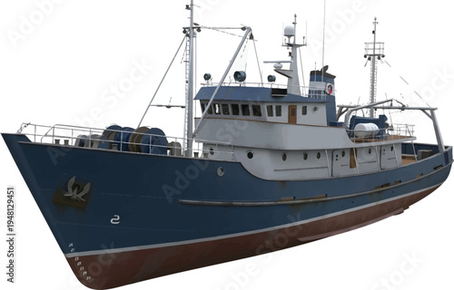 © Meharban, Naklejka premium Blue Fishing Boat on White Background