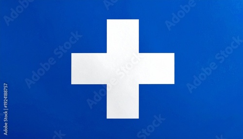 © Adobe, Fototapeta premium Blue flag with white symmetrical cross.