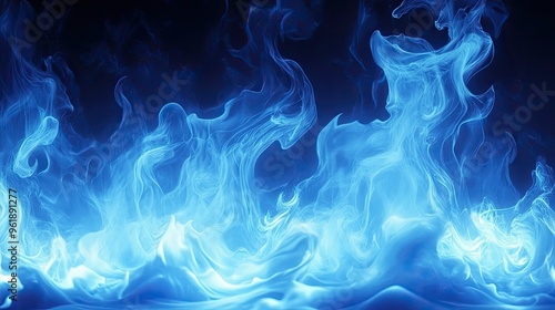 © Ilmi, Fototapeta premium Blue flames background. Abstract background blue white flames cartoon anime