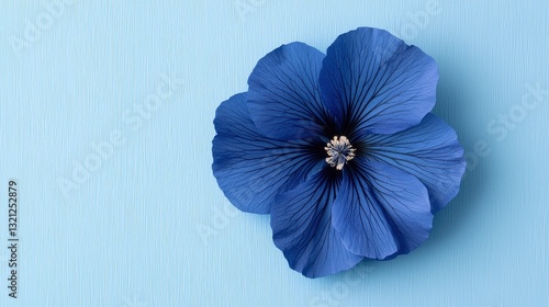 © Sariyono, Obraz premium Blue flax flower on a light blue background. Floral design element. Minimalist style.