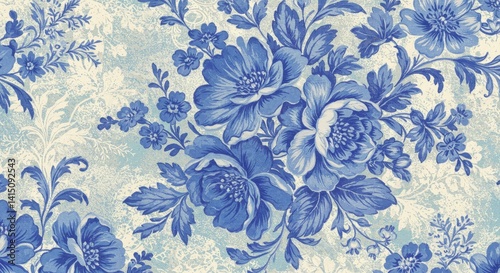 Obraz premium Blue Floral Pattern Textile Design - Elegant blue floral pattern on a light background, perfect for fabric, wallpaper, or home decor