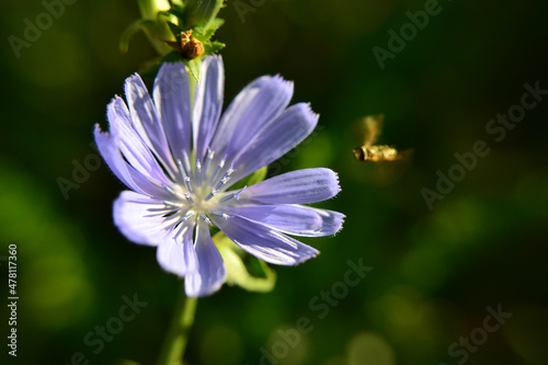 © Anny Cloudy, Fototapeta premium Blue flower with insects, close up