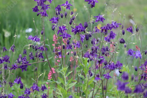 Naklejka premium Blue flowers of common columbine (Aquilegia vulgaris) in summer garden