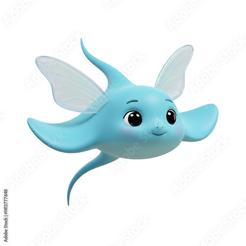 © Ares, Obraz premium Blue Flying Ray with Cute Face
