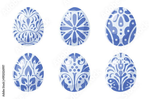 © Alina, Fototapeta premium Blue folk painted easter egg set