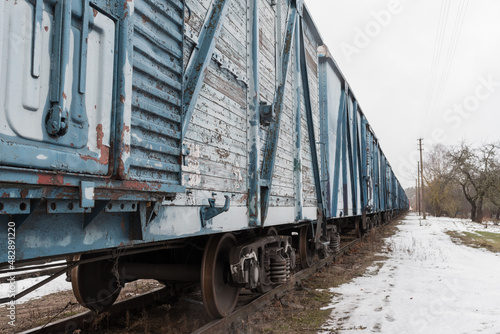 © Virginija, Fototapeta premium Blue freight train in winter.
