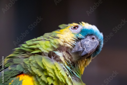 © Piotr, Obraz premium Blue-fronted amazon parrot looking upward, colorful tropical bird portrait close-up