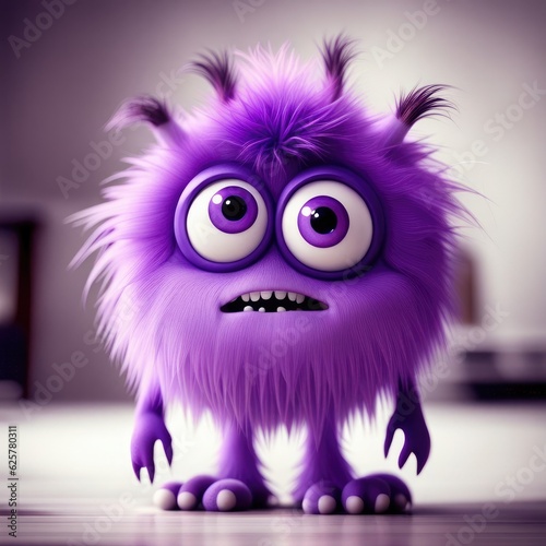 © Hesen, Fototapeta premium Blue furry monster with two large eyes and a big nose on white background