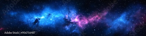 © antusher, Naklejka premium Blue galaxy background with stars and nebulae, abstract space panoramic banner