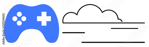 Obraz premium Blue gaming controller alongside a cloud icon with dynamic lines symbolizing connectivity and speed. Ideal for gaming, cloud technology, online play, innovation, entertainment, digital