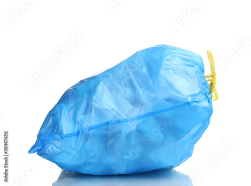 © Africa Studio, Fototapeta premium blue garbage bag with trash isolated on white