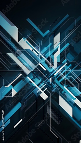 © Kartik, Obraz premium Blue geometric abstract technology and science backgroun
