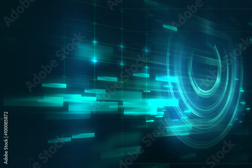 © monsitj, Fototapeta premium blue geometric circular shape abstract technology background