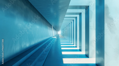 Obraz premium Blue Geometric Corridor, Generative AI Illustration