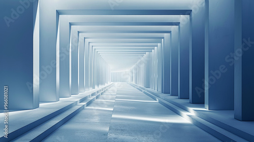 Obraz premium Blue Geometric Corridor, Generative AI Illustration