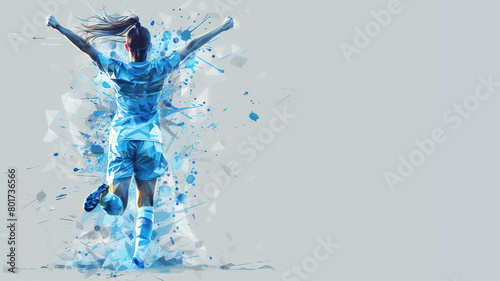 © Ari, Fototapeta premium Blue geometric form illustration of soccer player celebrating success