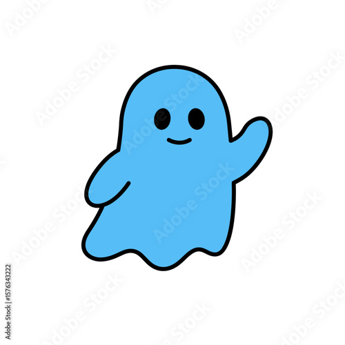 Obraz premium Blue Ghost Icon Friendly Wave Floating Simple Design
