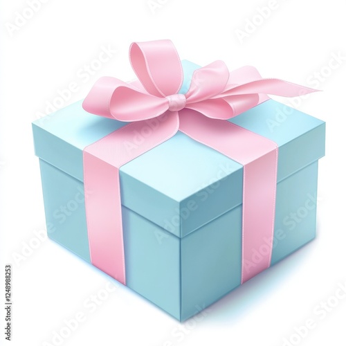 © Biggy, Obraz premium Blue Gift Box with Pink Ribbon Ideal for Celebrations and Events