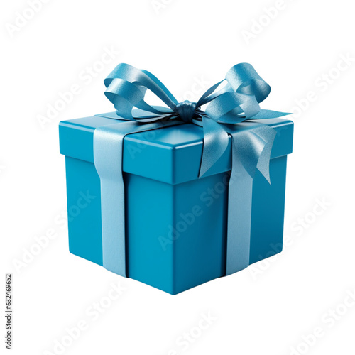 © EnelEva, Obraz premium Blue gift box with white ribbon, white background