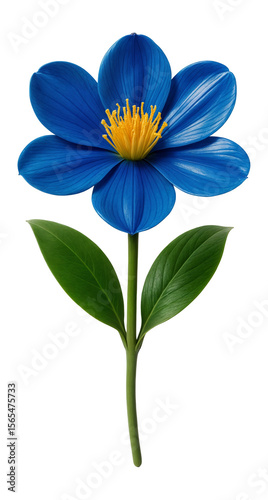 Naklejka premium Blue ginger flower with vivid blue petals and a cluster of yellow stamens