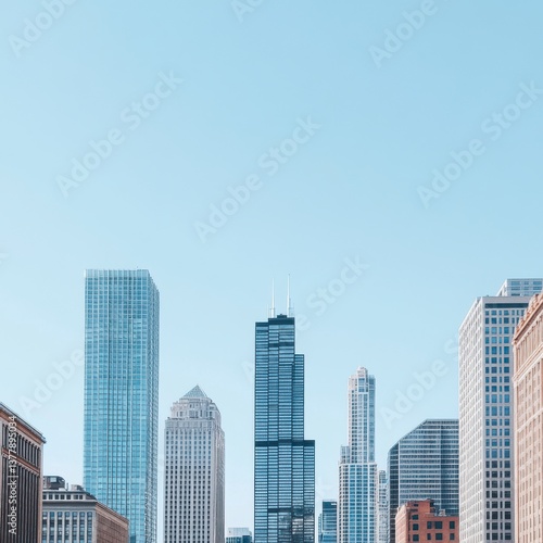 Obraz premium Blue Glass Skyscrapers Under a Clear Sky Daytime Cityscape