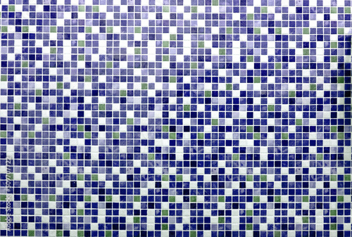 © sritakoset, Fototapeta premium Blue glass wall mosaic for texture background