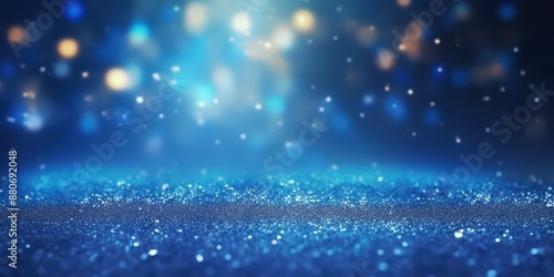 Obraz premium Blue Glitter Background with Bokeh Lights