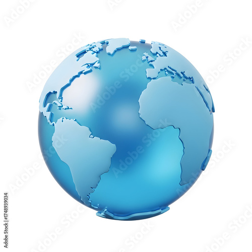 © PNG STOCKS, Fototapeta premium Blue globe showing continents a 3D render for geography and environmental concepts isolated on white isolated