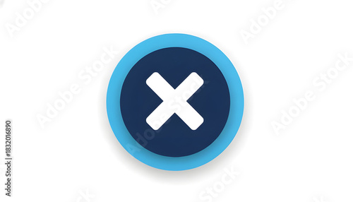 Obraz premium Blue glossy circle button with a red cross symbol for cancel or delete web...