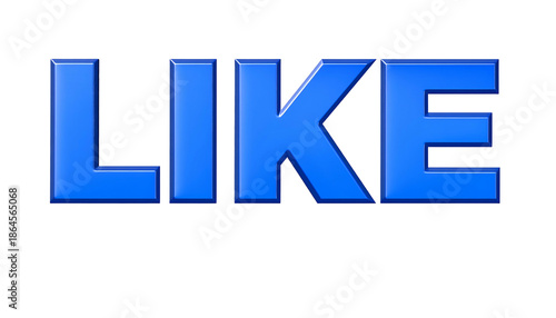 © Samsudin, Obraz premium Blue, glossy 3D letters spelling "LIKE" are centered on a black background, with slight highlights and shadows giving depth