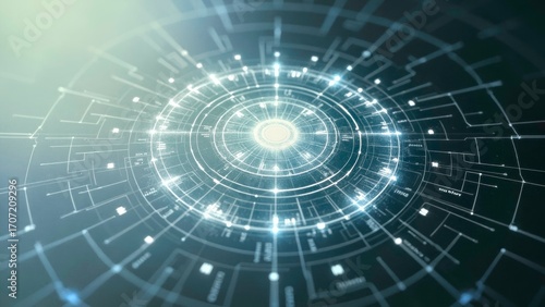 © 岛煮 木, Fototapeta premium Blue glowing array technology art scene