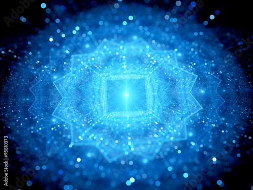 © sakkmesterke, Naklejka premium Blue glowing big data in space with particles