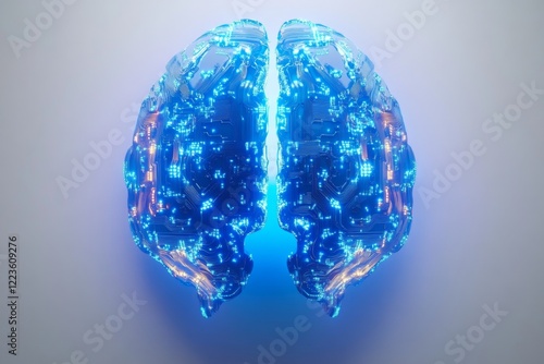 Fototapeta premium Blue glowing brain hologram symbolizing artificial intelligence and technology