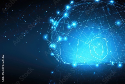 Fototapeta premium Blue glowing digital background with octagon outline and shield symbolizing...